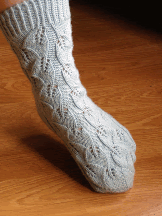 So cozy and comfy. These socks Favorite Socks: 25 Timeless Designs from Interweave. The pattern I chose is called Embossed Leaves.
